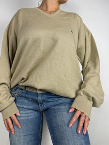 Grey graphic V neck stretchy long sleeves top (S/M)