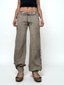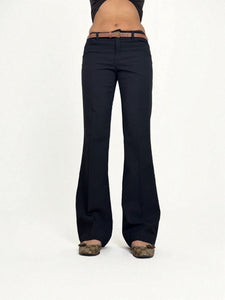 Grey check print office low waist flare / bootcut baggy pants (S)