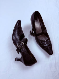 Black FF logo buckle wedge ballet flat heels (37.5)