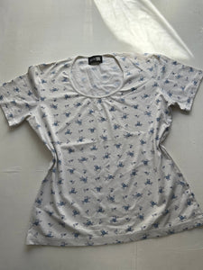 White floral print crewneck tee 90s y2k vintage (M/L)