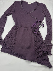 Grey flower appliquée medium shoulder bag (27x24cm)