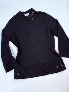 Black ruched super stretchy office siren shirt (S/M)