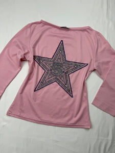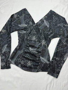Grey graphic V neck stretchy long sleeves top (S/M)